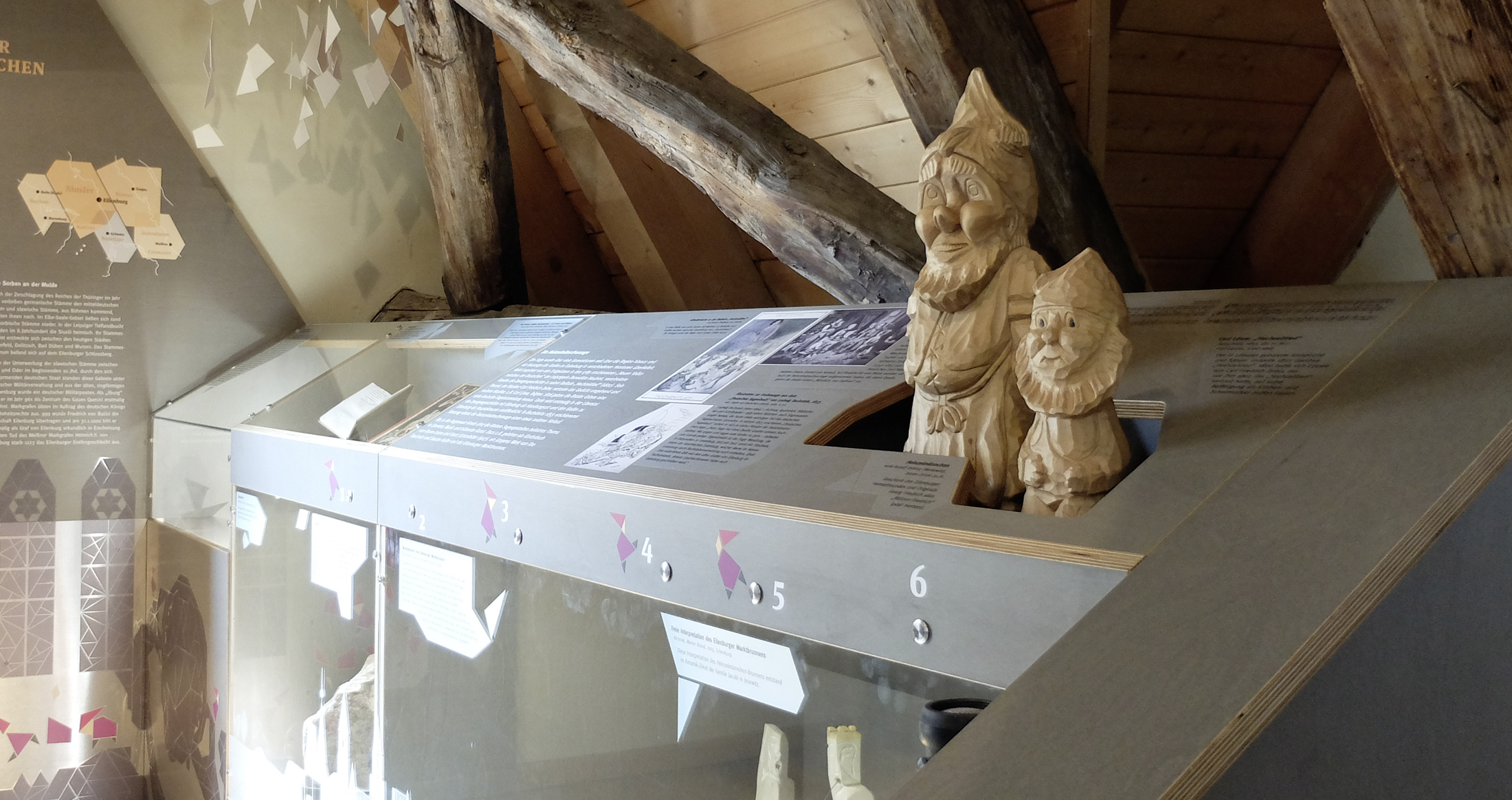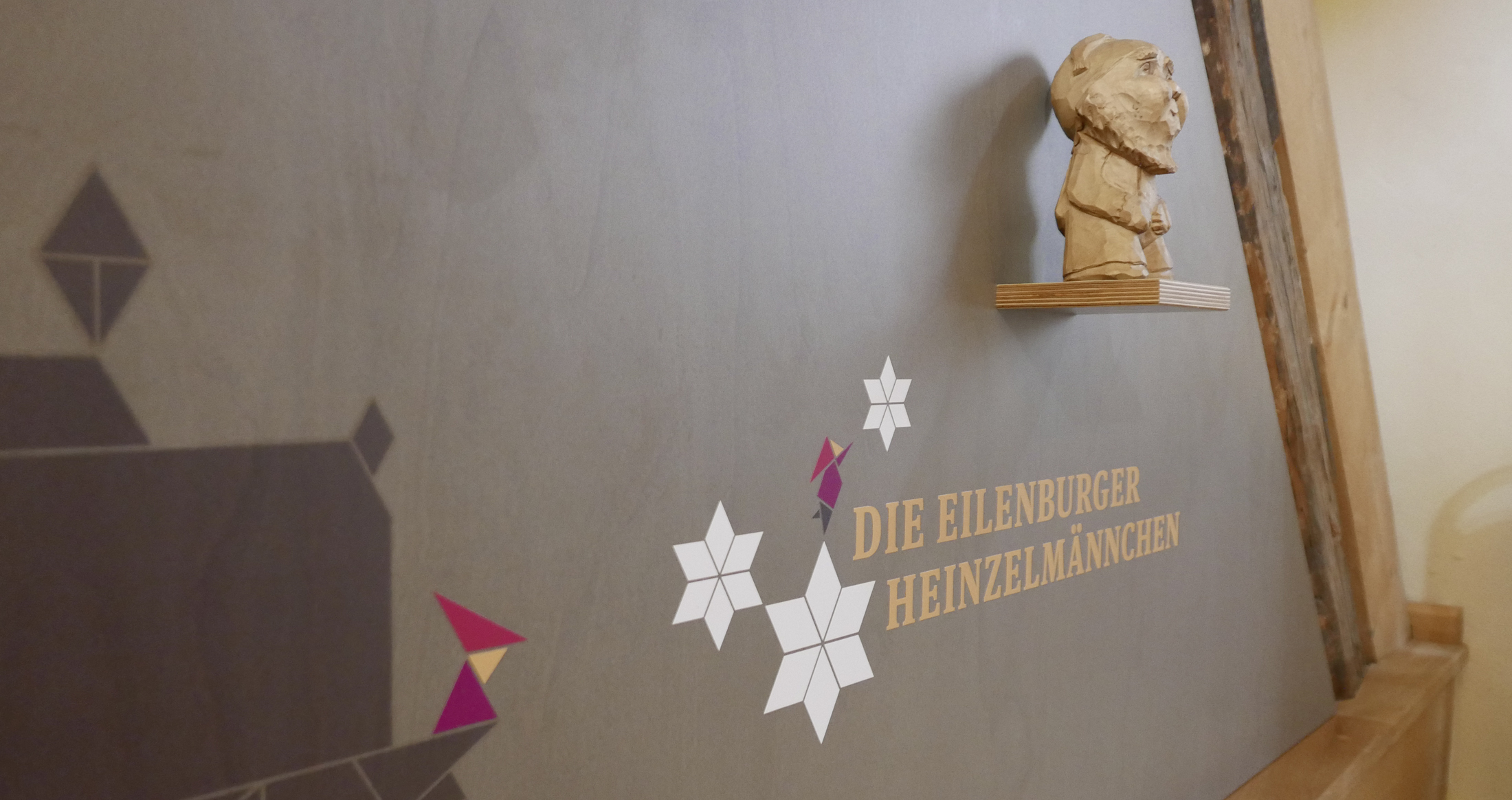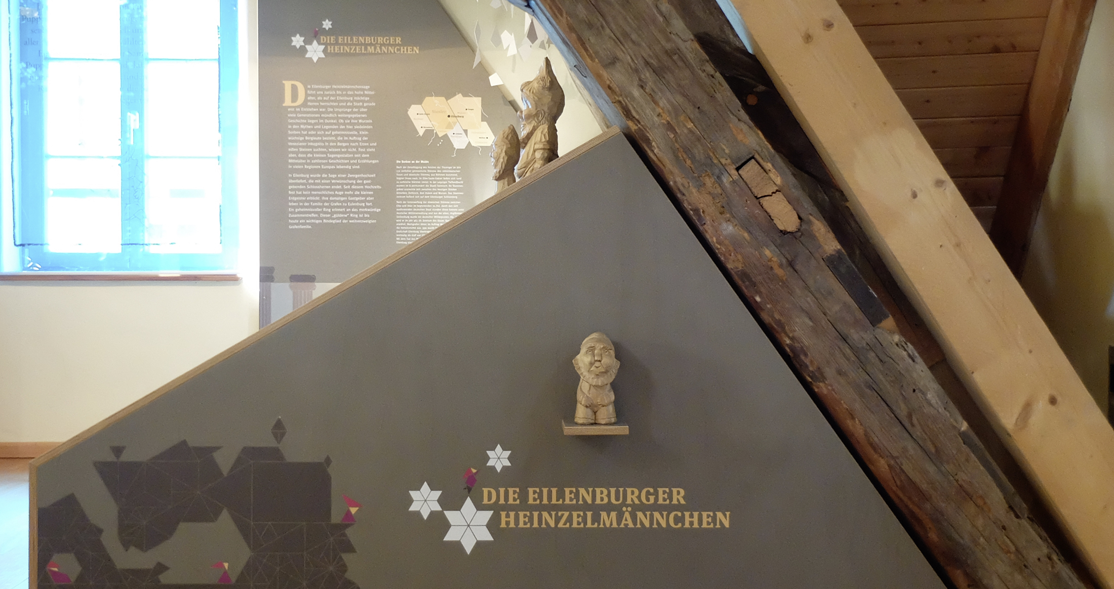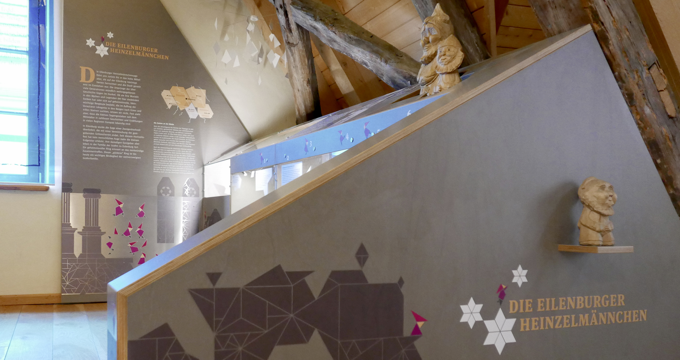 Die Eilenburger Heinzelmännchensage bekommt mit dieser Vitrine einen festen Platz im Eilenburger Stadtmuseum und mit ihr stadtgeschichtliche Informationen über die Besiedlung der Eilenburg für junge Besucher. Die Vitrine schmiegt sich in die Konstruktion des Dachgeschosses ein. Sie zeigt insbesondere den in der Sage erwähnten Ring der Ilenburger Grafen auf einer sich drehenden Zwergenpyramide. Die Pyramide und die applizierten Zwergenlandschaften wurden 2017 für die Sonderausstellung „Eilenburg, Ilburg, Eulenburg und die Heinzelmännchen“ gemeinsam mit Nicola Hammel-Siebert gestaltet.