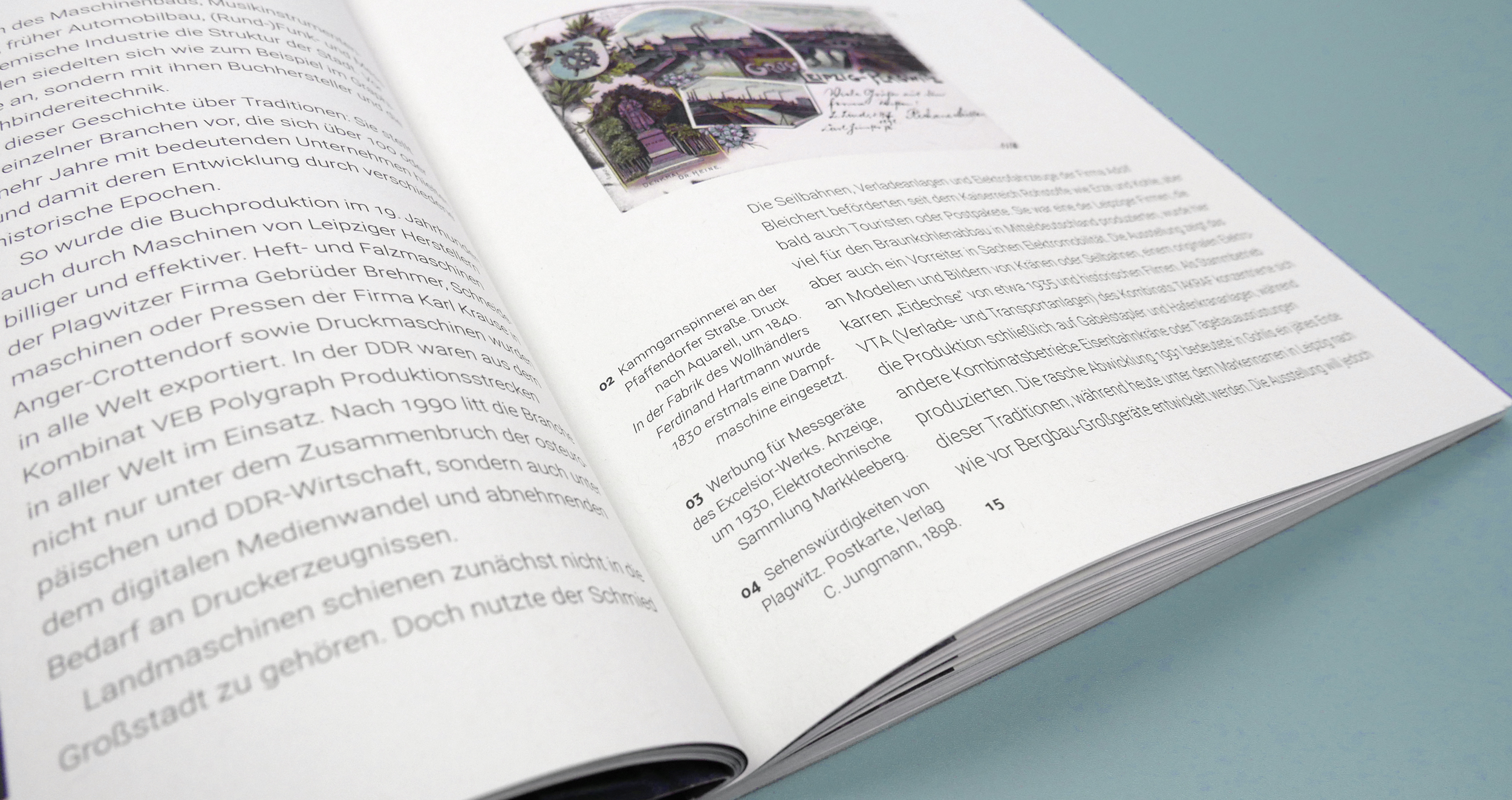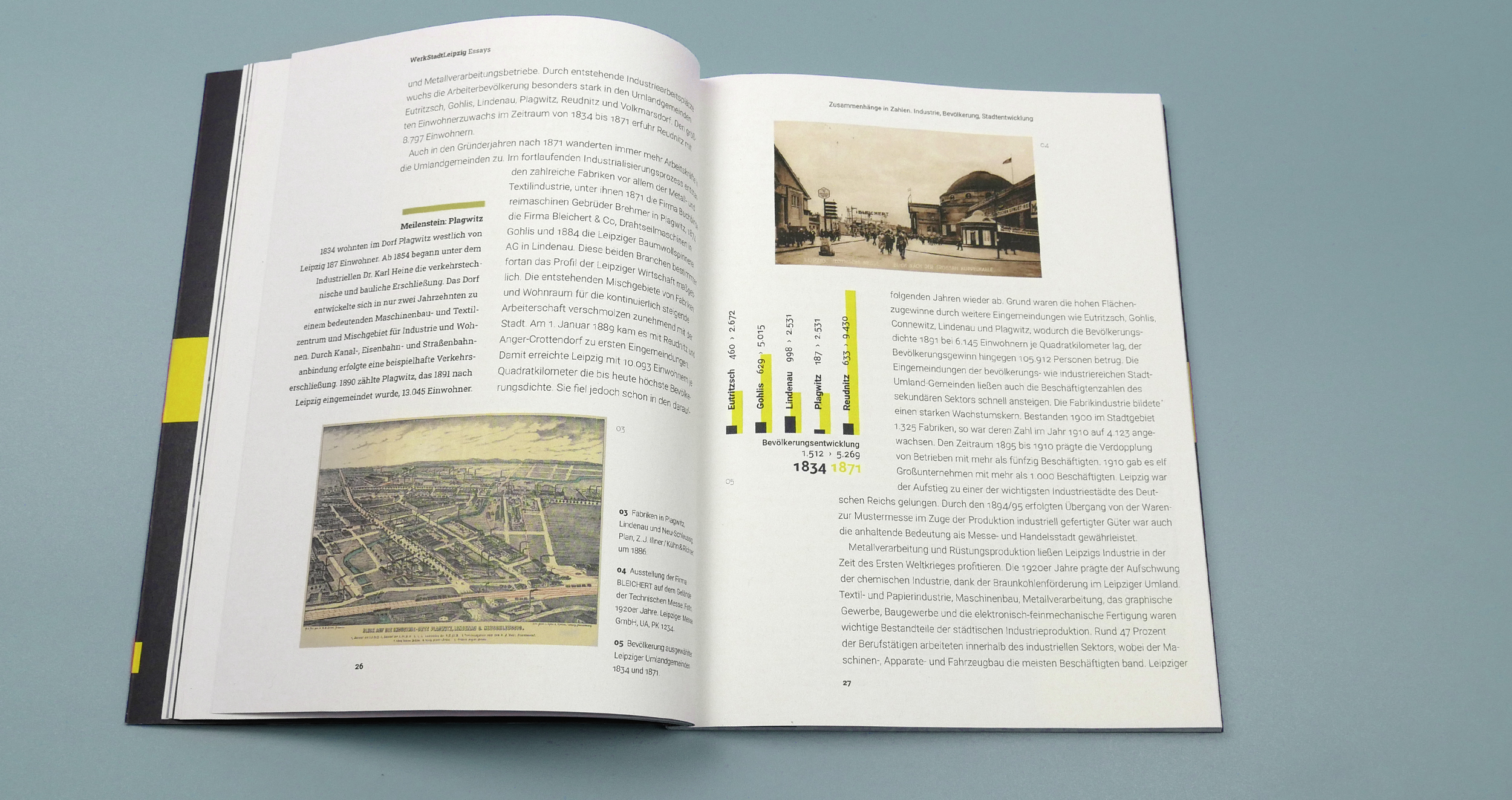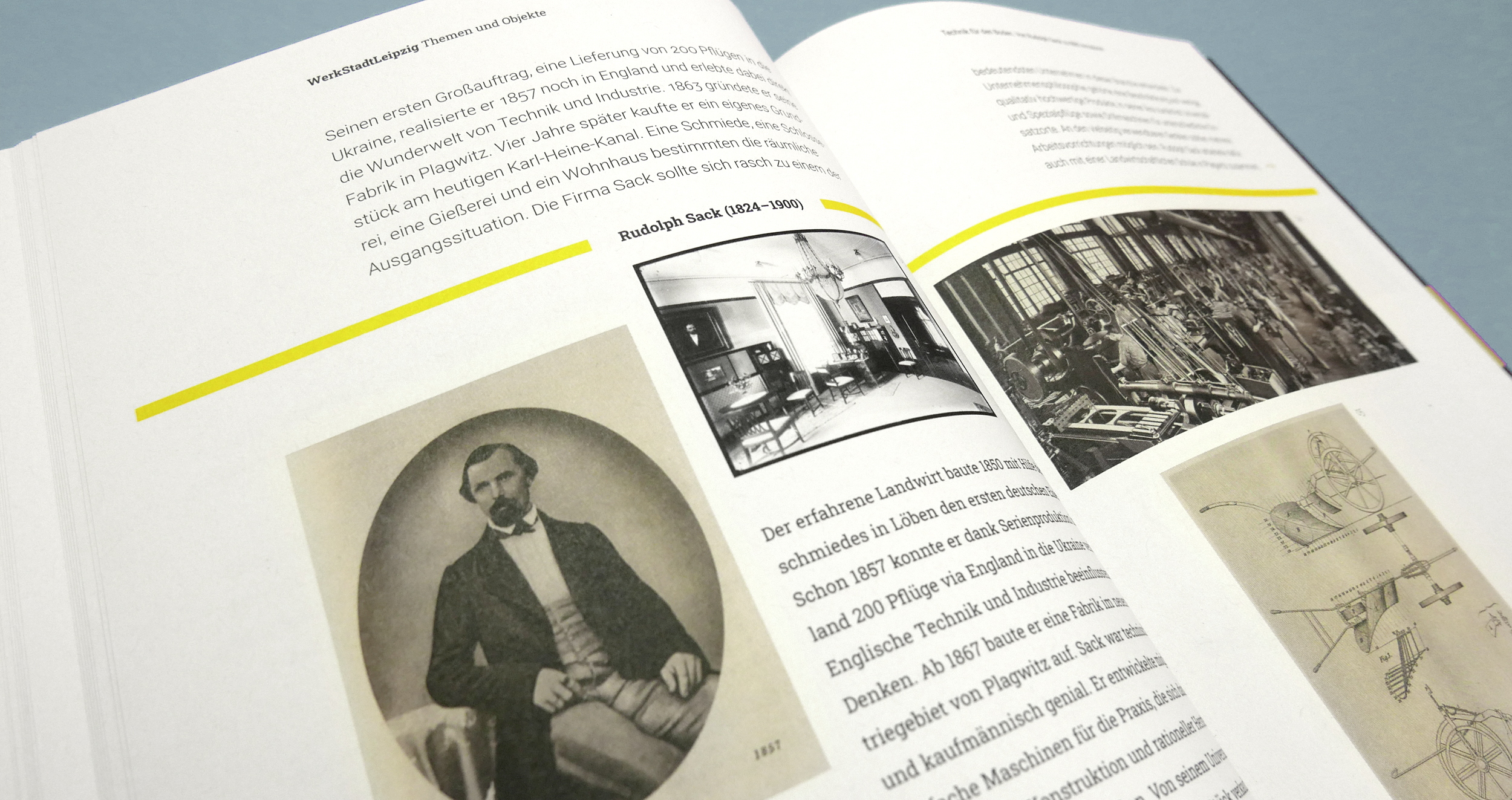 „Neben der Präsentation von Maschinen, Produkten und Unternehmerpersönlichkeiten thematisiert die Ausstellung auch die Modernisierung der Arbeits- und Lebenswelt vom Manufakturzeitalter bis zur Industrie 4.0. Erzählt werden Geschichten vom dynamischen Wachstum, von der Vielfalt der Leipziger Industrietradition und Arbeiterkultur sowie dem maßstabsetzenden Wandel ehemaliger Industrieflächen in Kultur- und Wohnstätten.“ Softcover mit Umschlagklappen, 18/23cm, 110 Seiten.